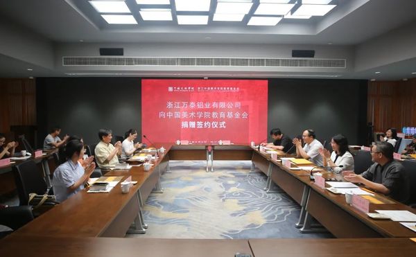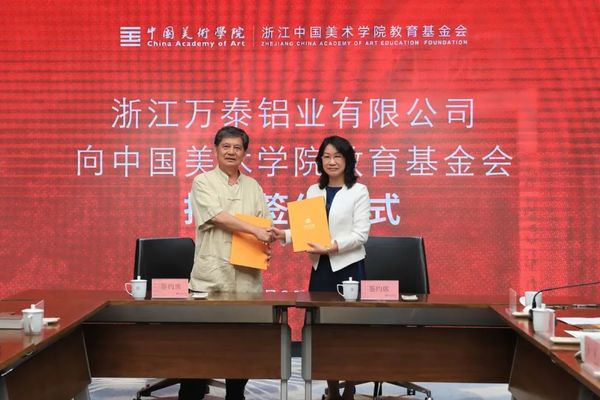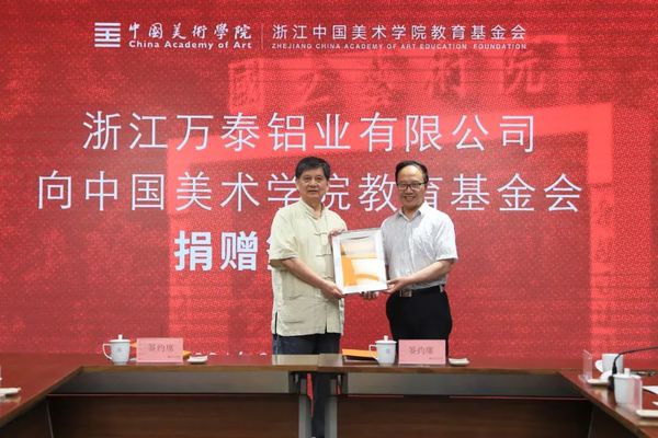 6月8日,浙江万泰铝业有限公司捐资800万元设立中国美术学院教育基金会“万泰基金——中国写意花鸟画资助” 项目,助推中国美术学院中国写意花鸟画学科建设。捐赠仪式上,中国美术学院党委书记金一斌向浙江万泰铝业有限公司董事长徐小飞颁发捐赠证书及荣誉理事证书,副院长傅巧玲与徐小飞代表双方签署捐赠协议。捐赠仪式由教育基金会理事长卢勇主持。