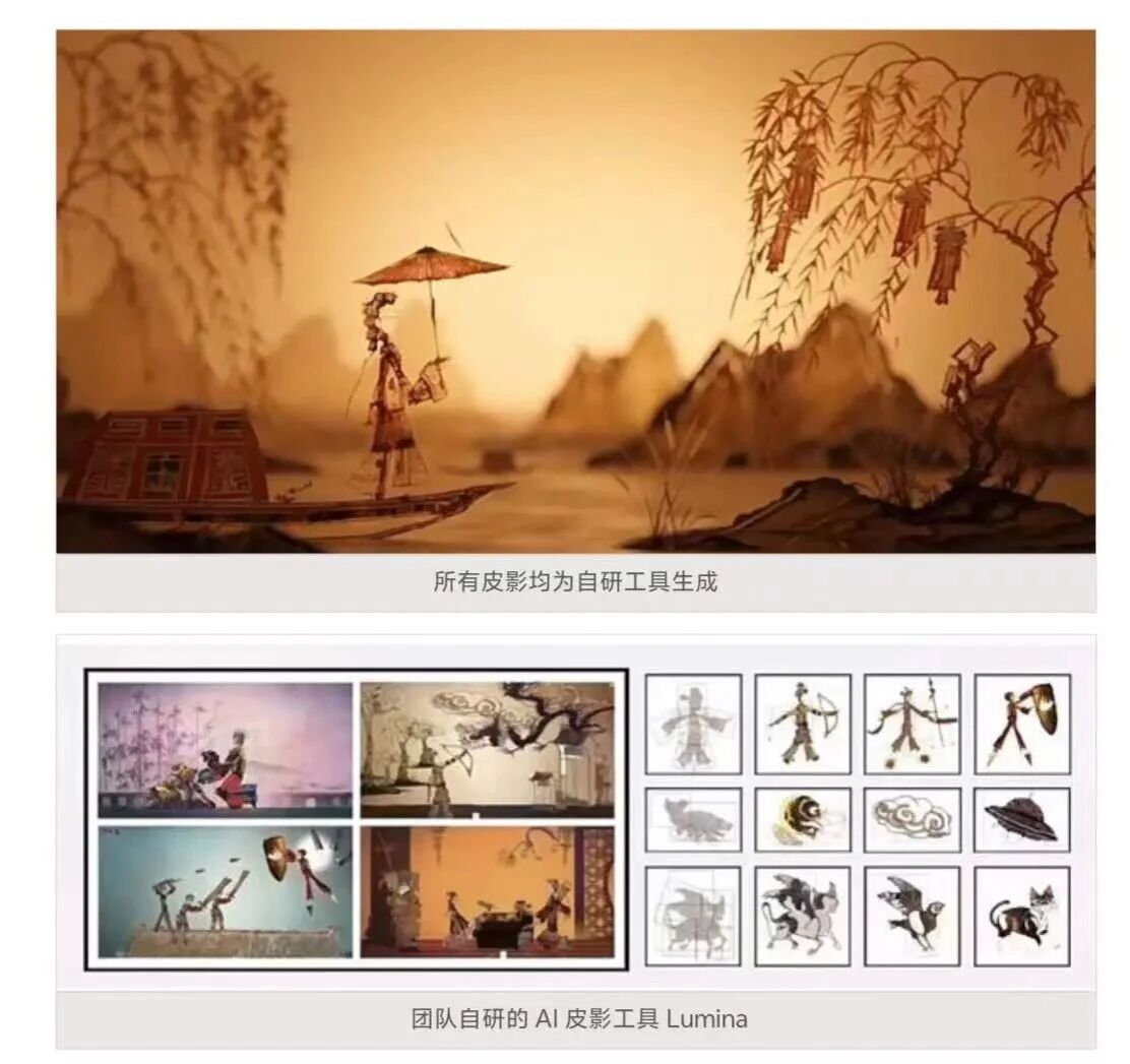 这是我们最熟悉的一层,也是科技介入美育最初阶的方式。它的核心逻辑是“代偿”——用技术弥补人在艺术创作或传播中的能力短板。比如来自清华大学美术学院的作品《影灯·灯影》,传统皮影戏需要多年训练才能掌握操控技巧,他们通过感应与AI图像生成,让零基础的观众也能用自己的身体动作生成皮影动画。