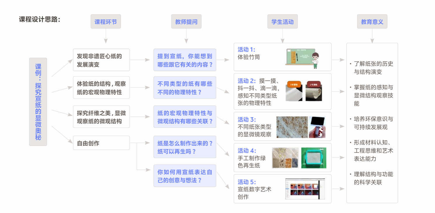 如果说工具层改变的是“如何做”,场景层改变的是“在哪做”,那么语言层改变的,是“如何想”。在这一层,技术不再只是外在辅助,而是内化为一种新的认知语言与思维语法。比如《美丽科学》项目,它通过高精度成像、虚拟仿真等技术,将微观的科学结构、抽象的原理,“转译”为可感知的视觉形象与交互模型。学生不再只是背诵“宣纸吸水性强”,而是通过显微图像看到纤维结构,理解其背后的科学逻辑,再回到水墨创作中去体验其美学价值。